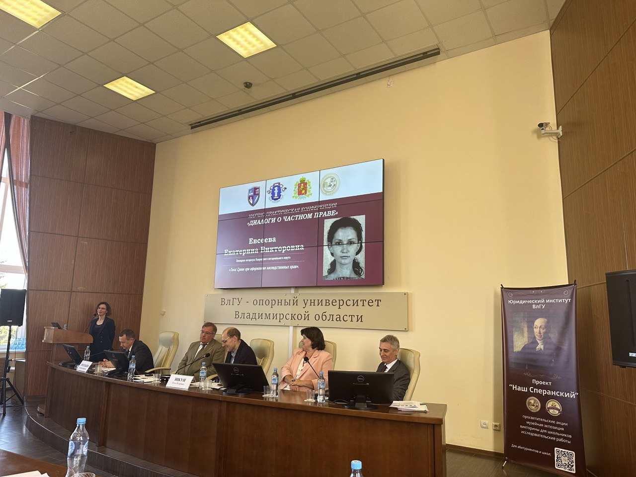 В свою очередь, 26 сентября состоялась научно-практическая конференция «Диалоги о частном праве», организаторами которой выступили Исследовательский центр частного права им. С. С. Алексеева, Владимирское региональное отделение АЮР, правительство Владимирской области и Владимирский государственный университет имени А. Г. и Н. Г. Столетовых.