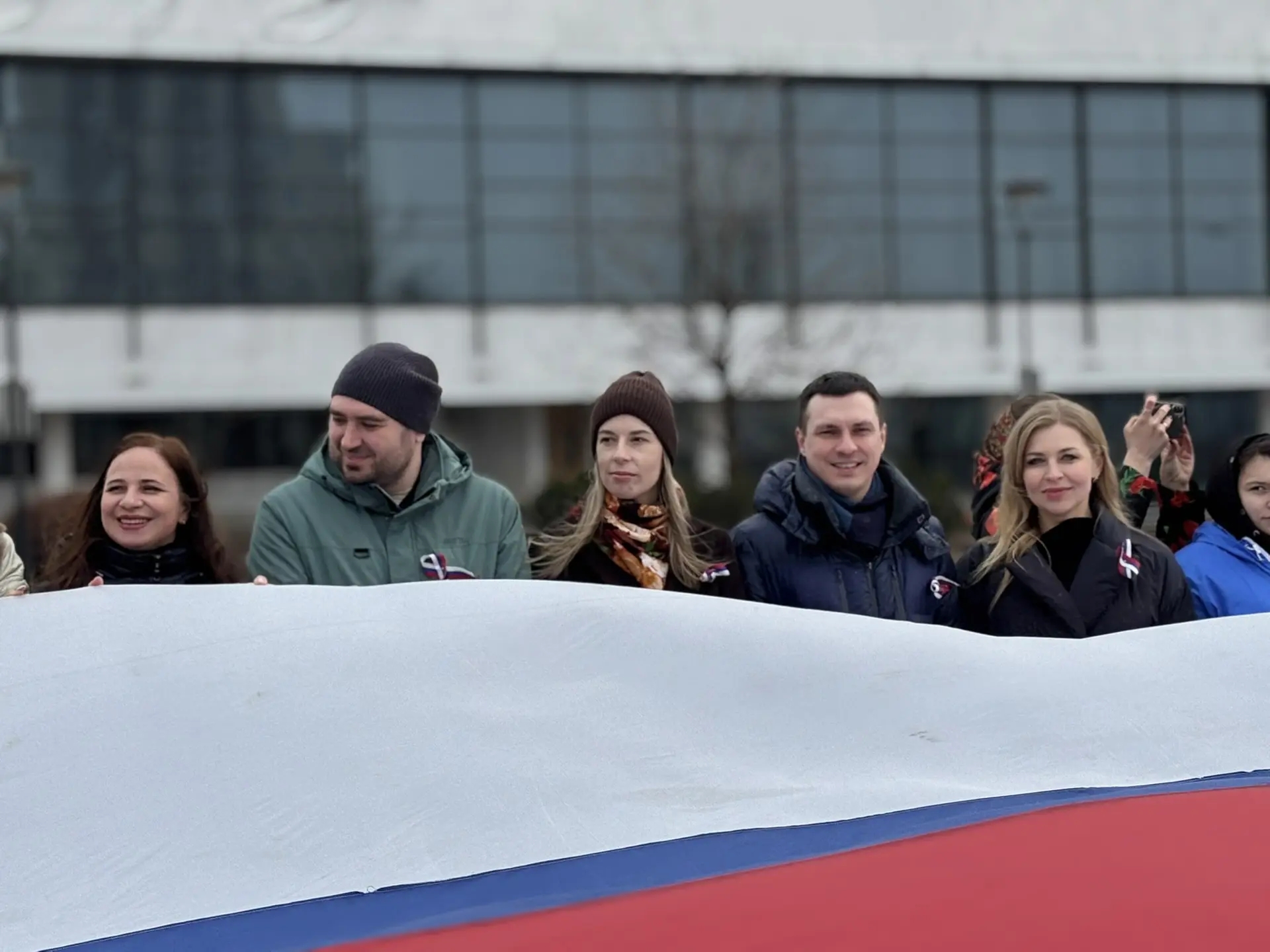 Сегодня на Советской площади Воронежа было особенно многолюдно и празднично. Представители Нотариальной палаты Воронежской области вместе с активистами «Молодой гвардии», волонтерами, членами молодежного Совета Минюста России и неравнодушными воронежцами развернули огромное полотно российского триколора в честь годовщины воссоединения с Крымом.