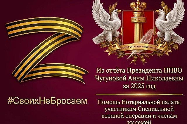 10 февраля было заключено соглашение о сотрудничестве между НПВО и АНО "Воронежский центр поддержки ветеранов специальной военной операции", а 12 февраля - соглашение о сотрудничестве между НПВО и региональным Комитетом семей воинов Отечества. На постоянной основе нотариусы НПВО проводят бесплатные правовые консультации для участников СВО и членов их семей, помогают в составлении правовых документов на базе филиала Государственного фонда поддержки участников специальной военной операции по Воронежской области «Защитники Отечества». За 2025 всего было проведено 58 мероприятий в Штабе общественной поддержки «Единой России».