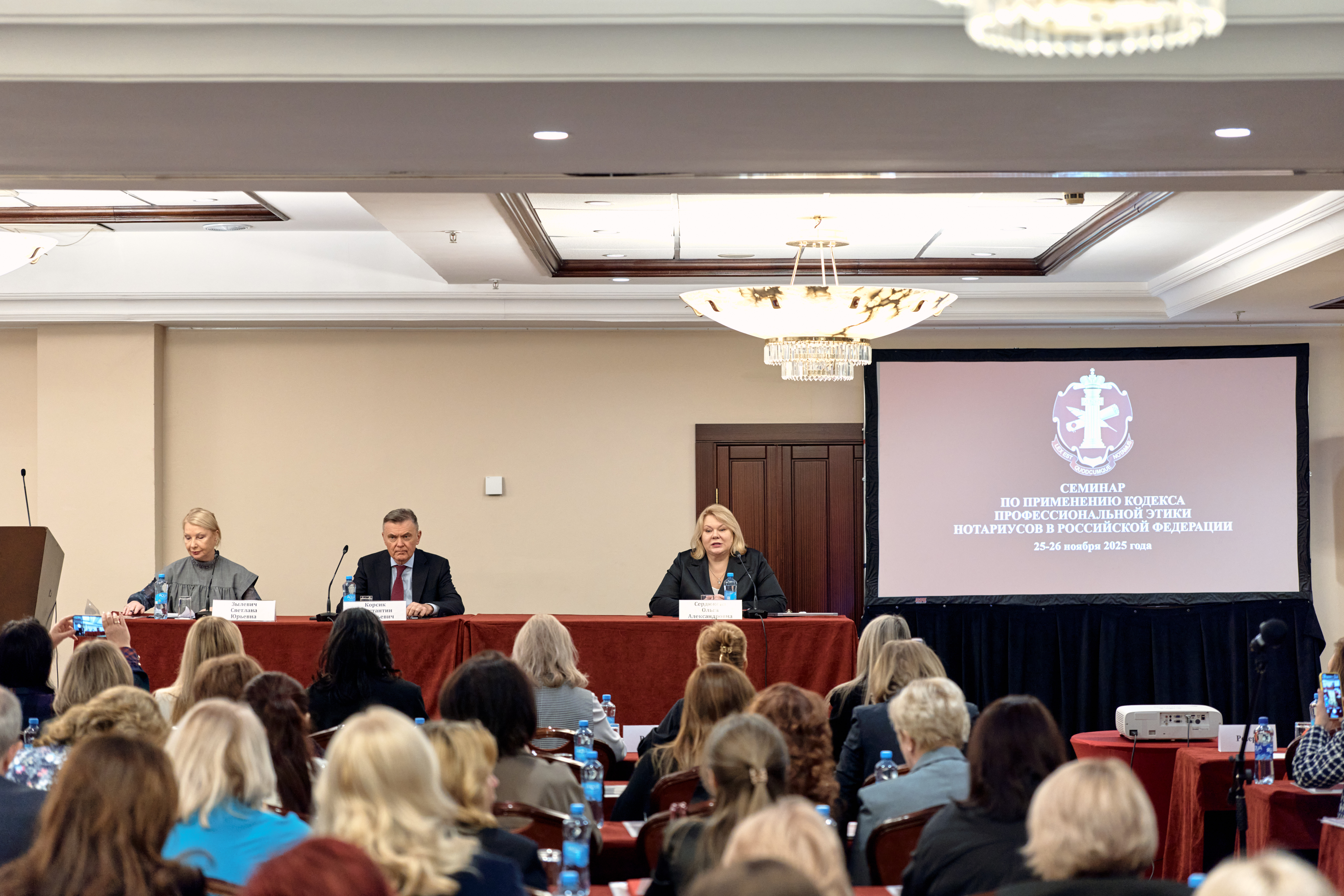 2526 ноября состоялся семинар по применению Кодекса профессиональной этики нотариусов для руководителей нотариальных палат субъектов РФ, а также председателей и членов профильных комиссий. Организатором мероприятия выступила Комиссия Федеральной нотариальной палаты по профессиональной этике.